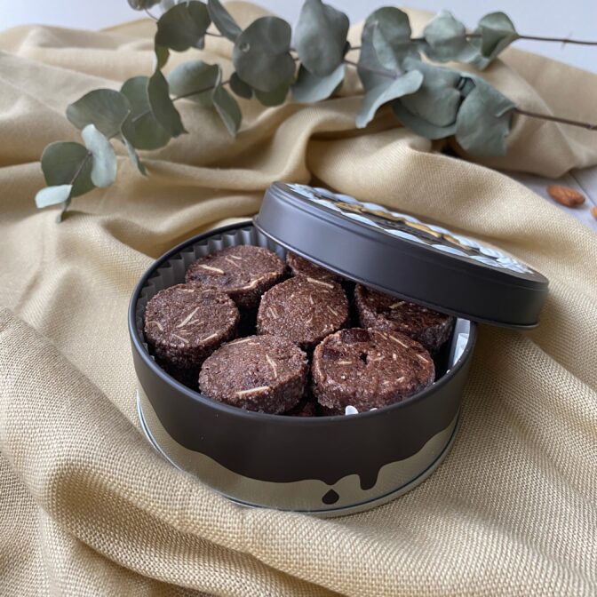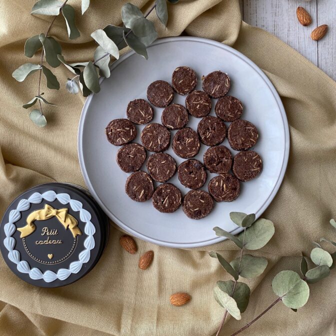 薄力粉、国産バター、グラニュー糖、アーモンド、カカオ70%チョコレート、ココア、卵、塩